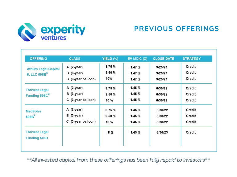 Experity Ventures provides accredited investors with access to a private credit opportunity in litigation finance, designed to diversify portfolios independent of traditional markets.
